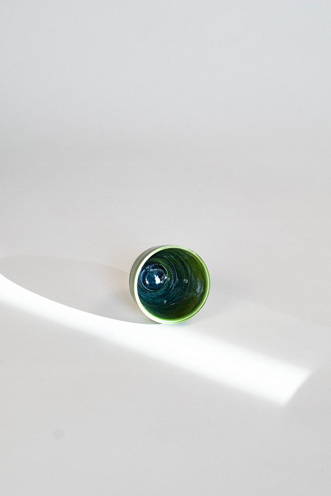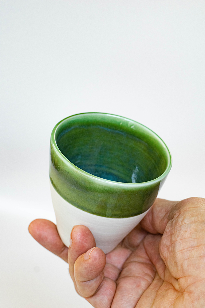 porcelain julia simonot’s green glaze poured and dipped wheel thrown