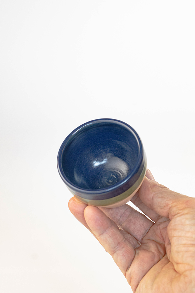 red stoneware julia simonot’s green glaze over her blue glaze poured and dipped wheel thrown
