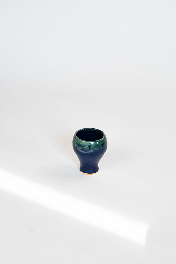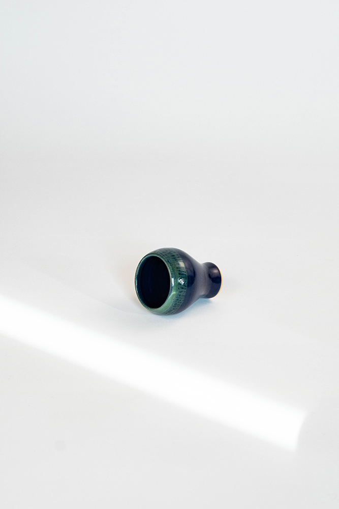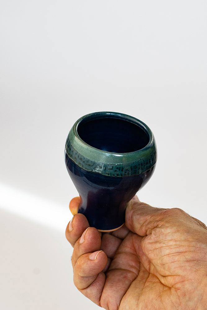 red stoneware julia simonot’s green glaze over her blue glaze poured and dipped wheel thrown