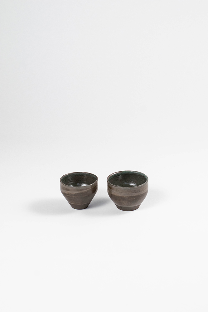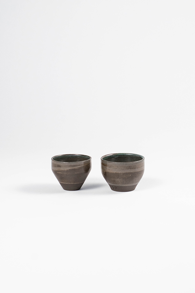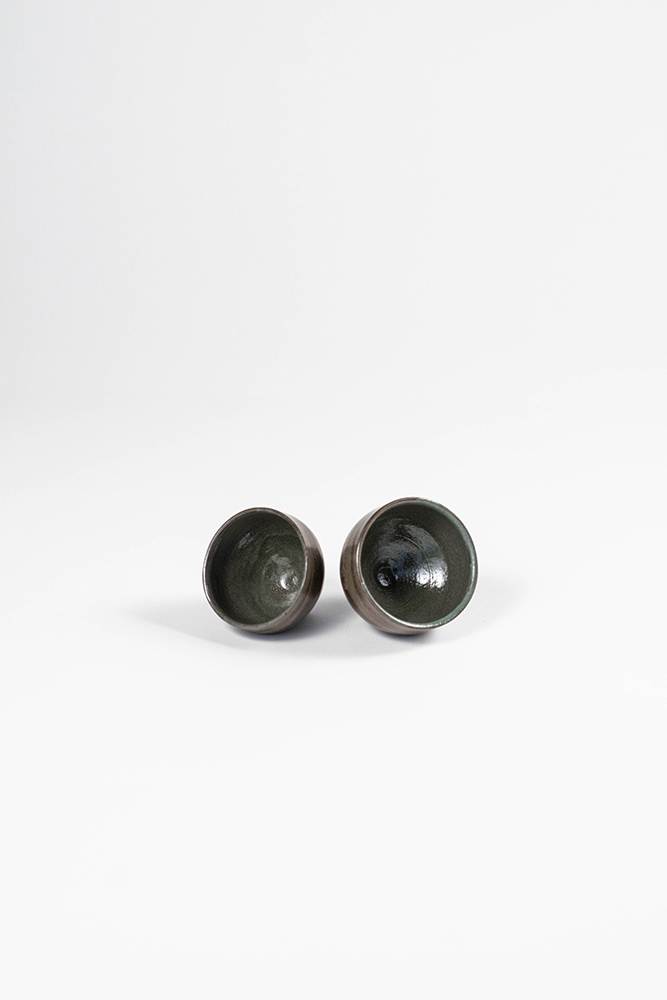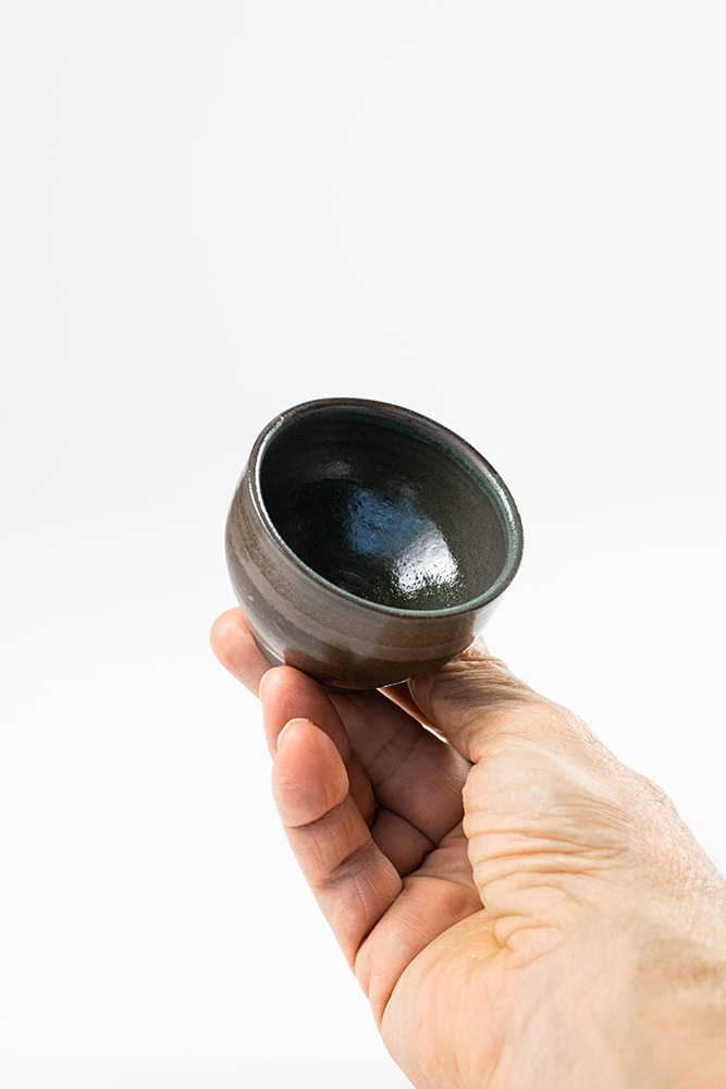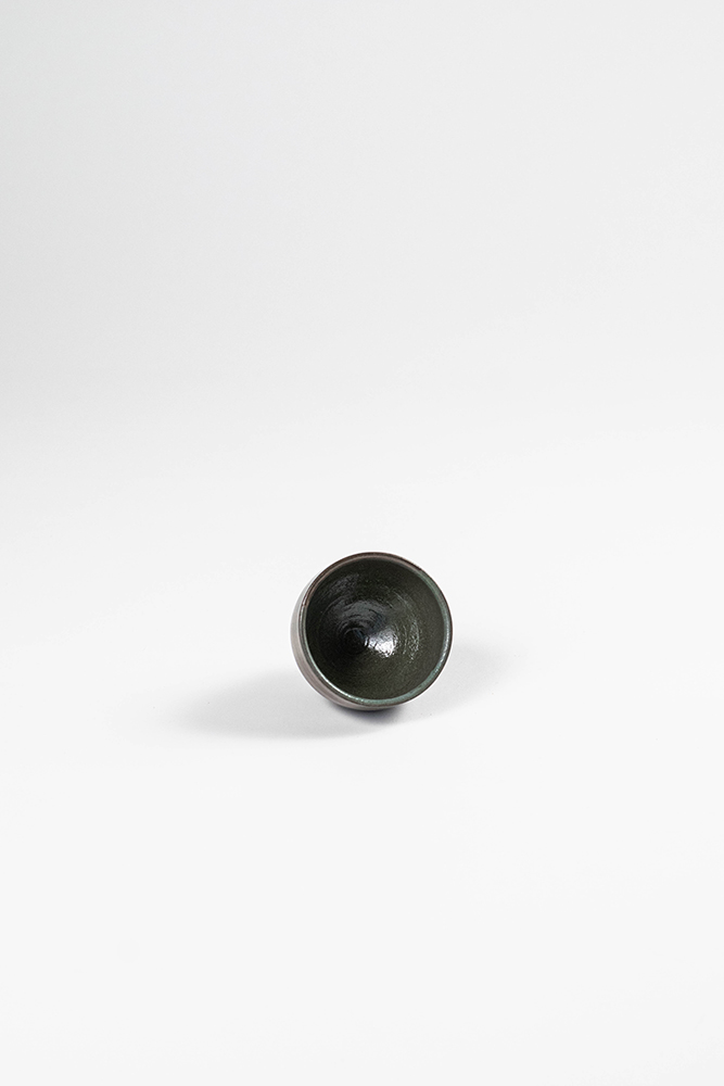 black stoneware sage gray glaze dipped wheel thrown