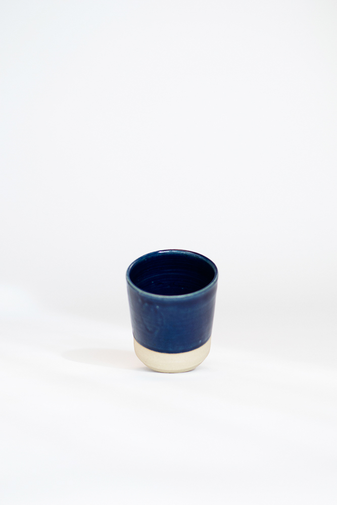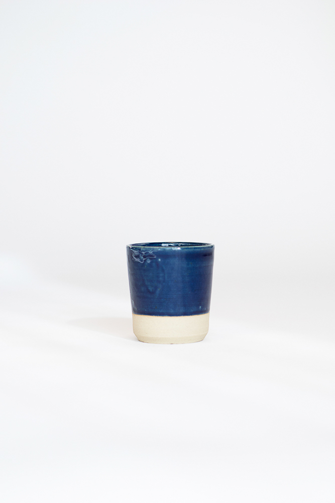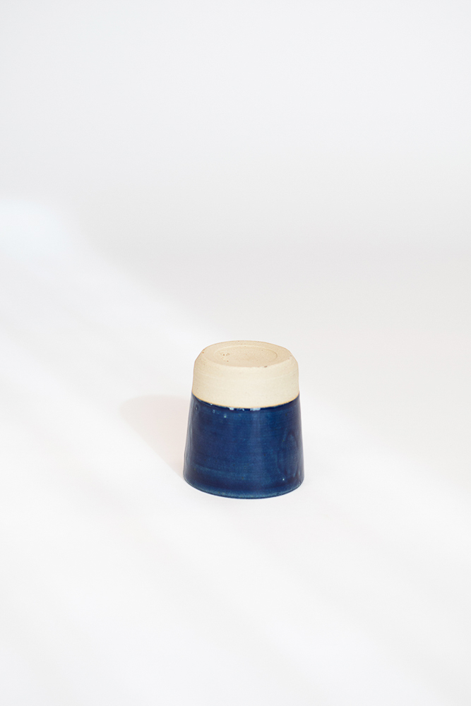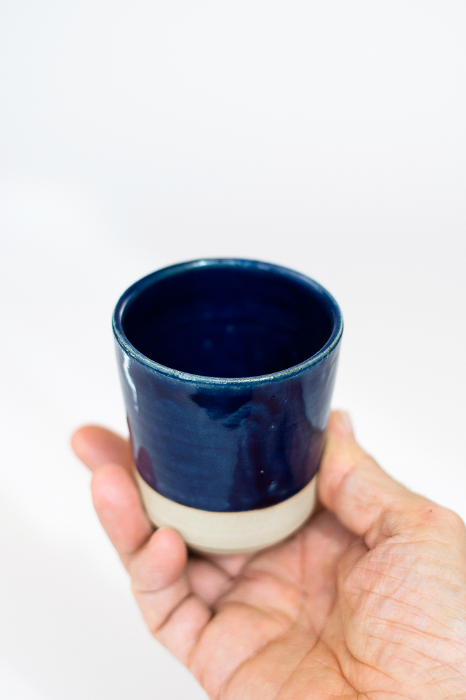 white stoneware julia simonot’s blue glaze dipped wheel thrown