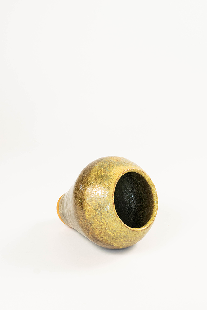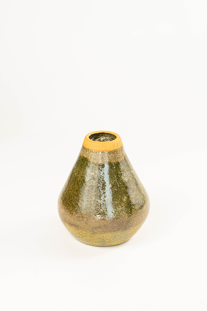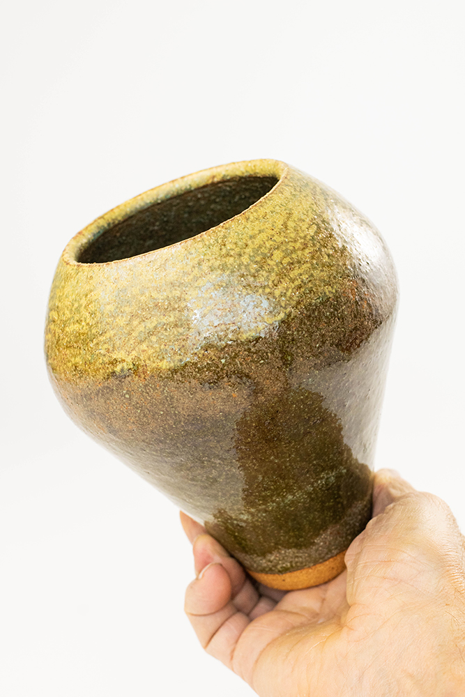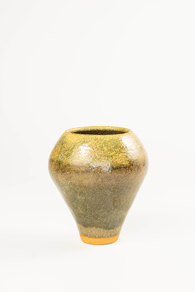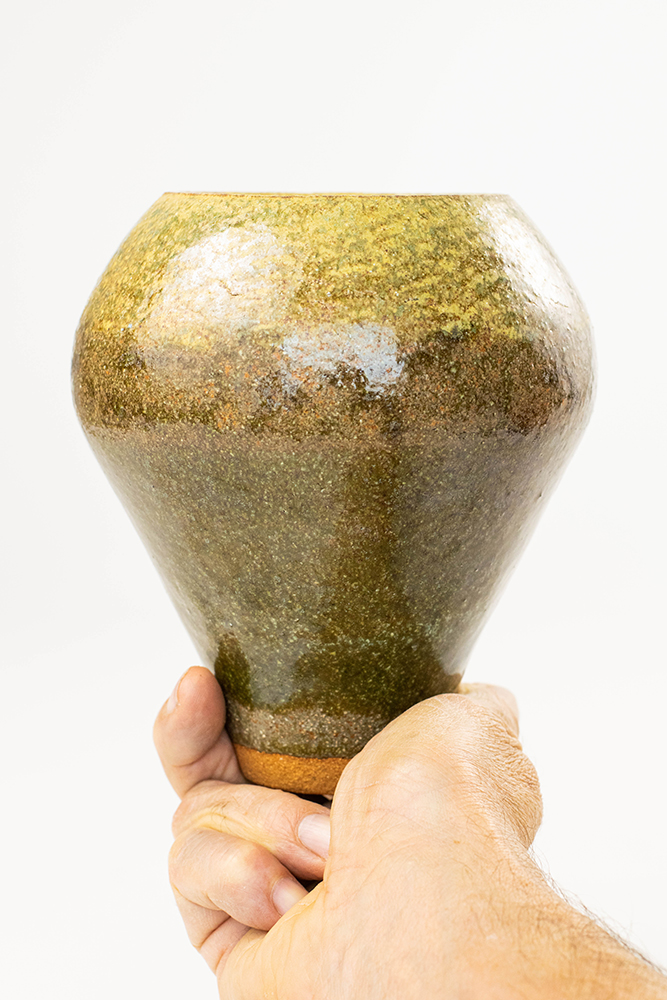 highly grogged red stoneware julia simonot’s green glaze dipped with desert sand brushed wheel thrown